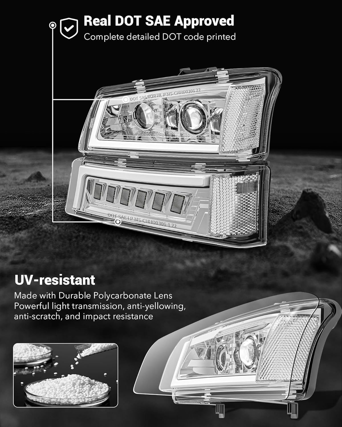Compatibility: Our LED headlight assemblies are compatible with 03-06 Chevy Silverado 1500 2500 3500 & HD; 07 Silverado 1500 2500 3500 & HD Classic; 03-06 Chevy Avalanche 1500 2500 (except Factory Body Cladding)