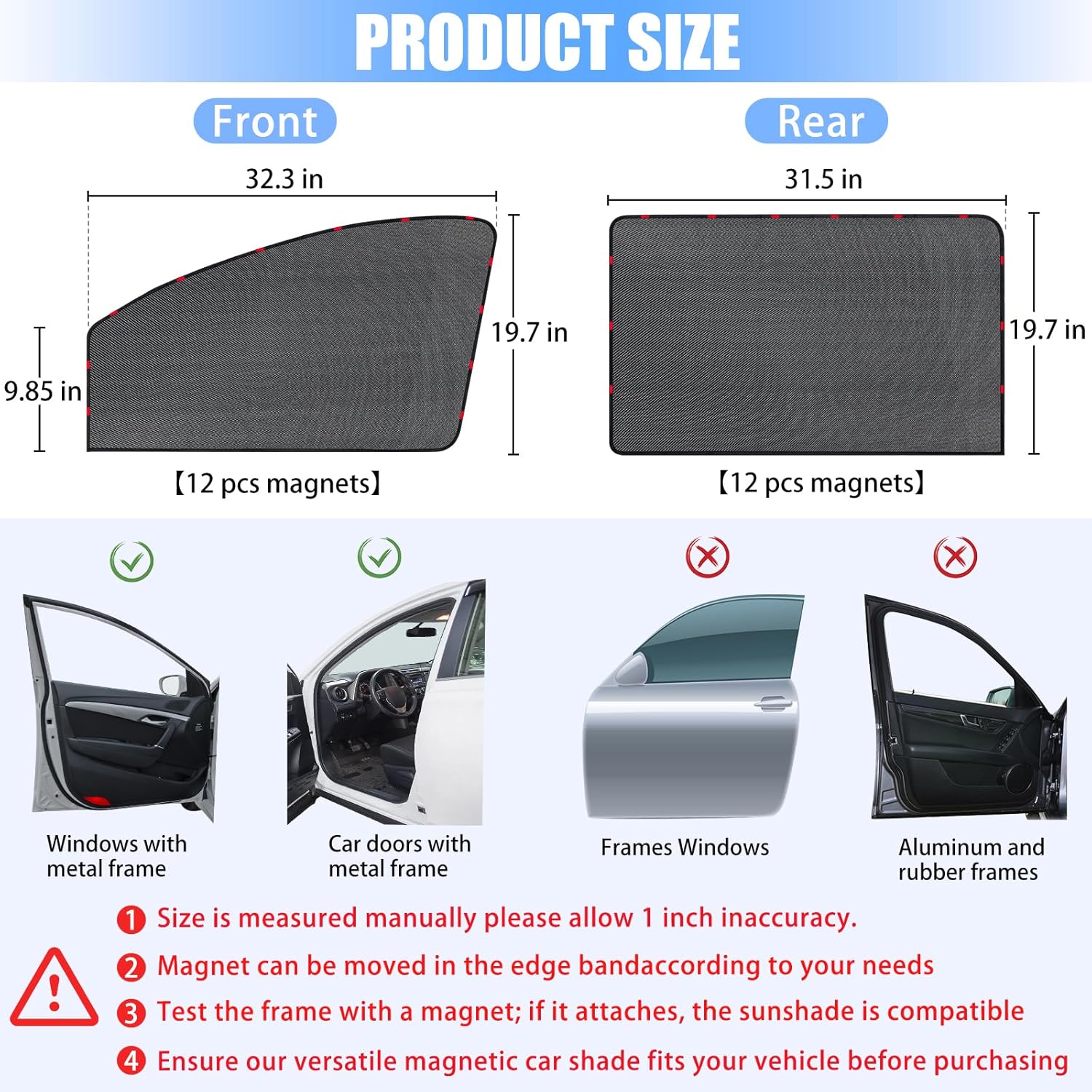 🧲【Universal Fit with Strong Magnetic Hold】 Equipped with powerful magnets, our car window covers offer a secure fit, ensuring they stay in place even with active little ones. PLEASE NOTE: Due to the variety of car materials, for safety precautions, we recommend buyers to test with a regular magnet before purchasing