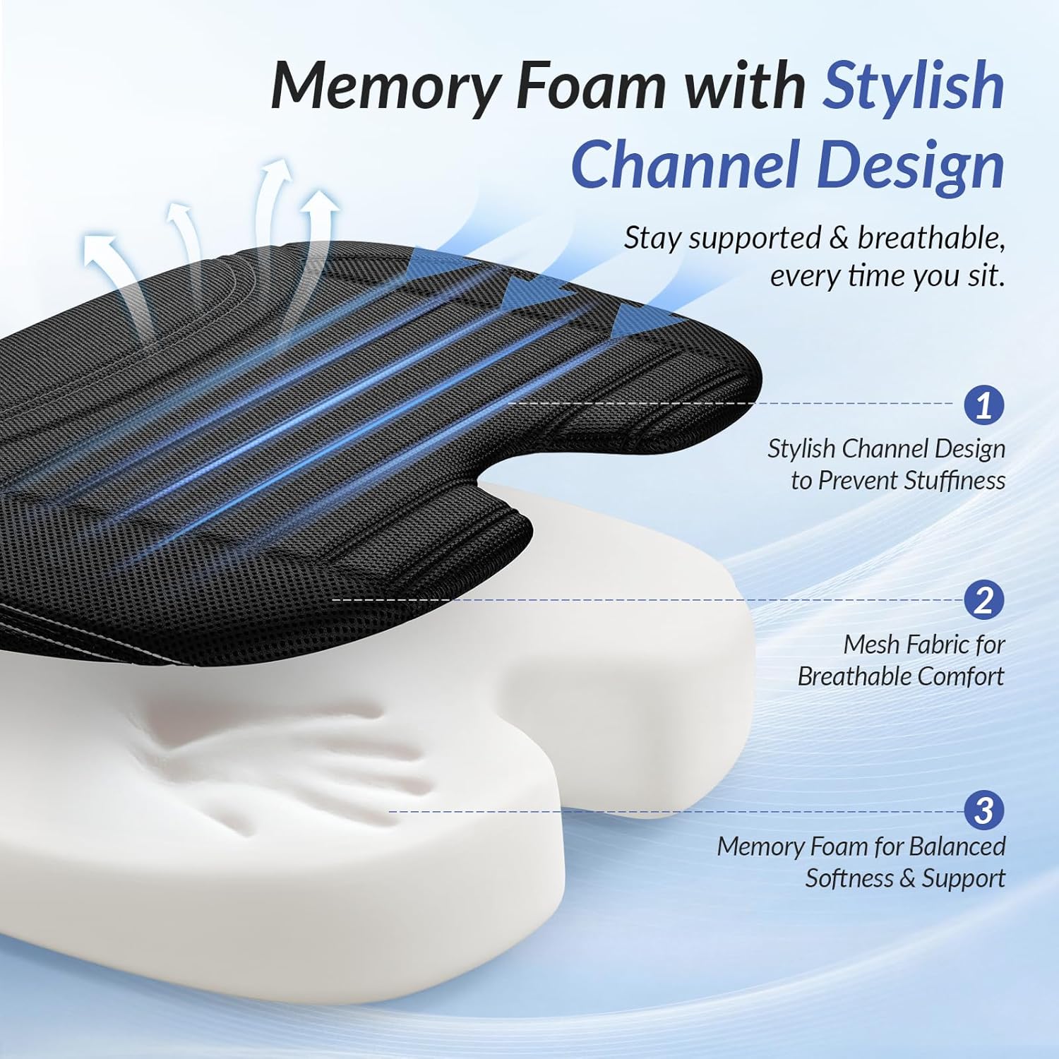 Stylish Channel Design for All-Season Driving Comfort: This car cushion features a unique channel design on its surface. These channels promote airflow to keep your seat pleasantly cool and fresh during long drives. Plus, this design provides anti-slip performance for enhanced driving stability and safety. Beyond functionality, these elegant channels serve as the texture, elevating your seat’s style and making this wedge seat cushion a perfect companion for both comfort and style throughout all seasons