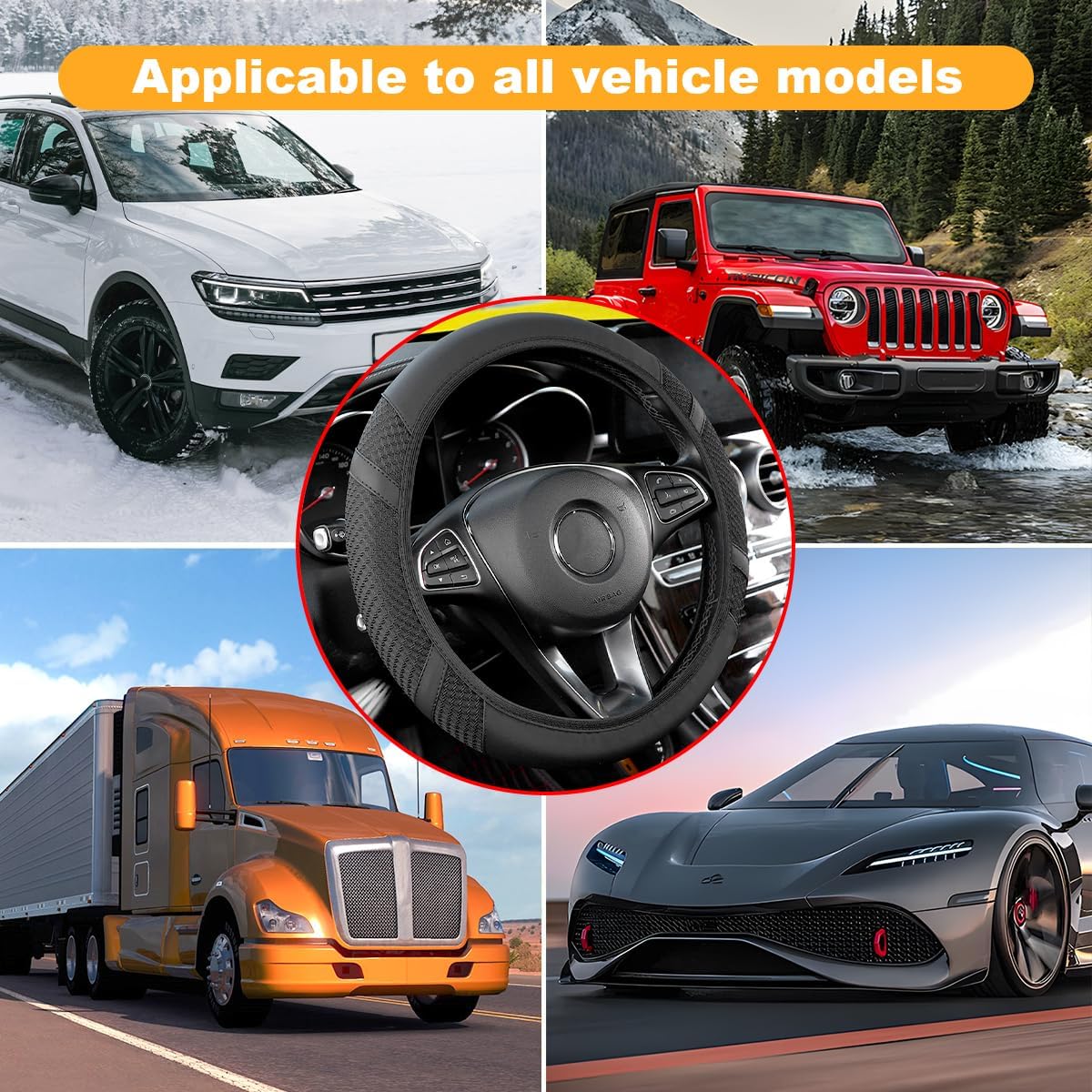 Wide Usage: This inner ring-less car steering wheel cover fits round and D-shaped steering wheels from 14.5 inches to 15.5 inches in diameter, its wide compatibility makes it able to meet the needs of off-road vehicles, trucks, sedans and a host of other types of vehicles, this car steering wheel cover is able to use this car steering wheel cover to achieve a good fit.