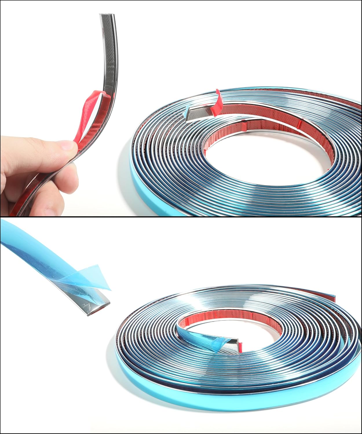 [Flexible and Cuttable] The chrome trim strips on the inner and outer sides of the car body are soft and flexible, and can be bent and cut. You can trim or cut them to the desired length according to the installation environment, making them very easy to apply.